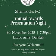 ๐ขโช๏ธโ๏ธ Shamrocks FC - Annual Awards Presentation Night โ๏ธโช๏ธ๐ข๐ Saturday, 8th November 2025๐Lisdo...