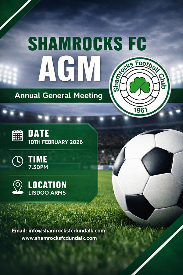 Shamrocks FC AGM will take place in the Lisdoo Arms, on Tuesday 10th February 2026, at 7.30pm. βοΈπ’βͺοΈβοΈ
