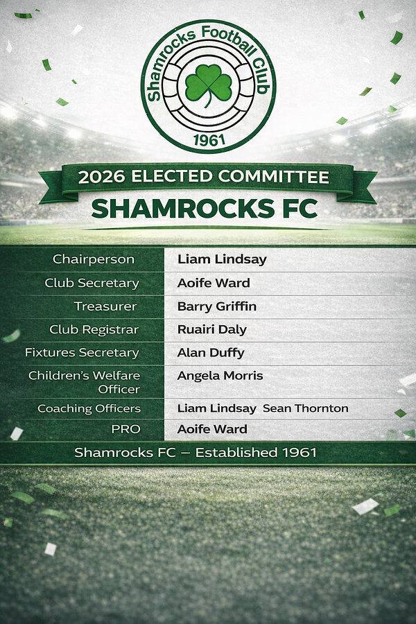 Following our recent AGM, Shamrocks FC are pleased to announce the elected committee for 2026.